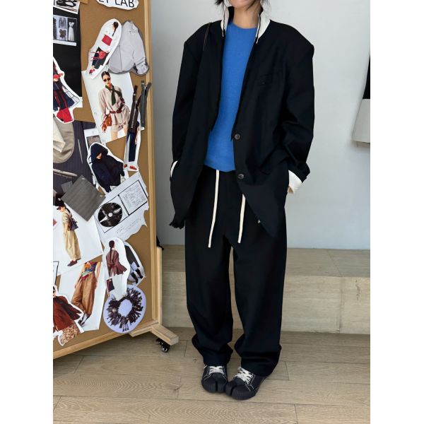 This autumn and winter suit jacket redefines modern tailoring with its innovative color - blocking and double - collar design, offering a sophisticated yet avant - garde piece for the fashion - forward.